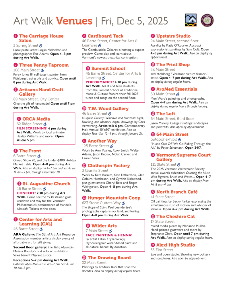 Montpelier Art Walk – Friday, December 5, 2025